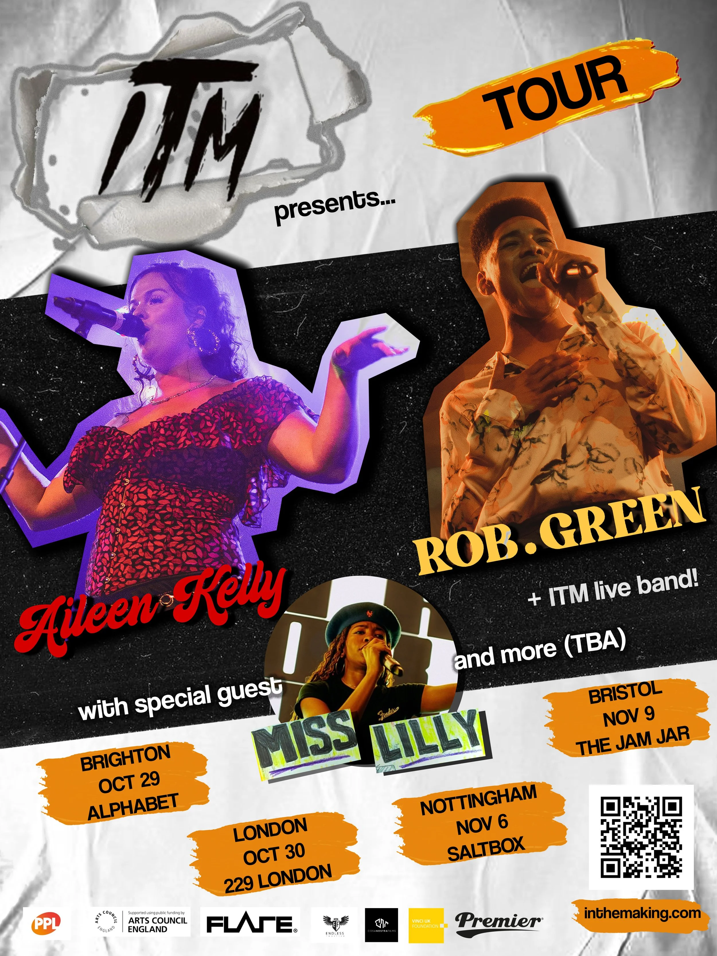 Presented by In The Making CIC led by Ivor Novello Award-winner Cassell The BeatMaker (The Streets), the ITM Live Tour brings rising stars, all backed by the ITM live band, to Brighton, London, Nottingham & Bristol this autumn.